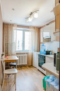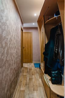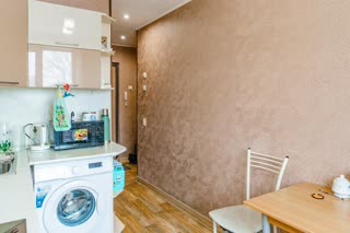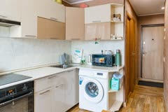 Для новых жильцов остаются кухонный гарнитур со встроенной варочной панелью и духовым шкафом, кондиционер, а также функциональная мебель: гардеробная система в прихожей, платяной и угловой шкафы, диван.